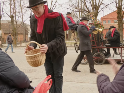 Kuldīgā garāmgājējiem dāvā pavasarīgu prieku