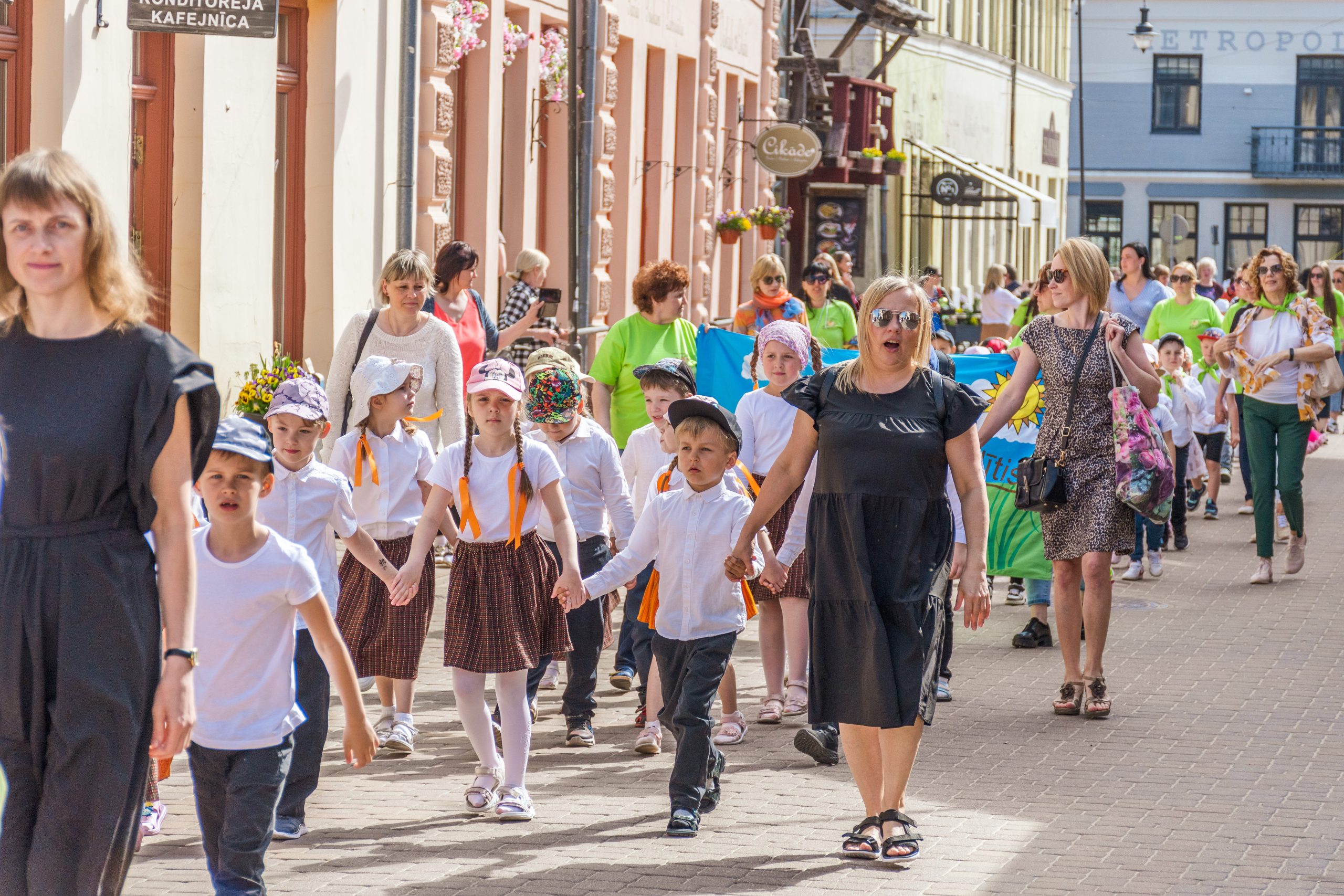 Mazie dziesmu un deju svētki tika ieskandināti ar svētku gājienu. Tas sākās no Liepājas ielas gala (no kajenīcas “Kursas Zeme”), tālāk dalībniekiem virzoties pa Liepājas, Smilšu un Pētera ielām, bet galamērķis – Pilsētas estrāde. Mazos dziedātājus un dejotājus gājienā atbalstīja arī prāvs vecāku un līdzjutēju pulks. Priecīgo brīdi, atrašanos un uzstāšanos uz Pilsētas estrādes skatuves, varēja izjust vairāk nekā 400 jaunie dziedātāji un dejotāji.