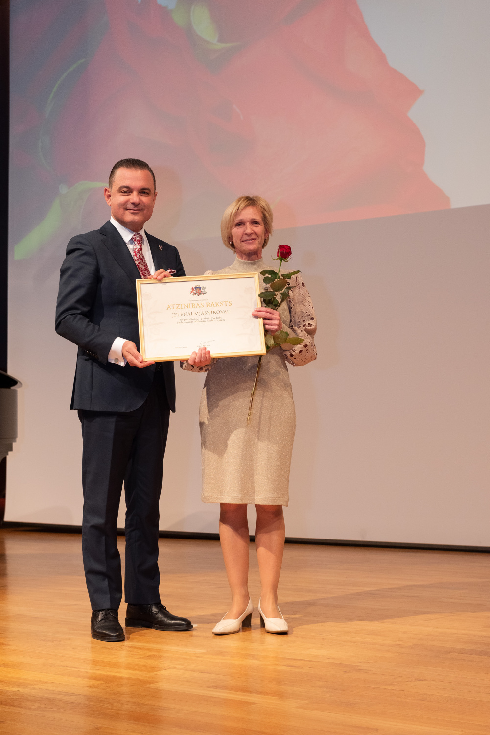 Veselības ministrijas apbalvojums – Atzinības raksts tika pasniegts 62 nozares profesionāļiem. Starp augstā apbalvojuma saņēmējiem bija arī Kuldīgas slimnīcas Iekšķīgo slimību nodaļas vadītāja, interniste, pneimonoloģe Vija Rendniece un Neatliekamās medicīniskās palīdzības un pacientu uzņemšanas nodaļas dežūrārste Jeļena Mjasņikova.
