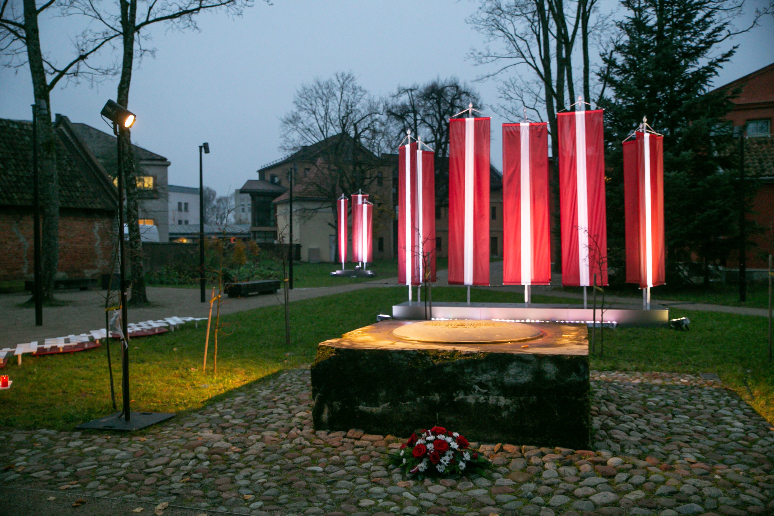 Visas dienas garumā iedzīvotāji bija aicināti nolikt svecītes piemiņas vietā brīvības cīnītājiem  – Liepājas ielā 39 Kuldīgā, bet vakarā bija iespēja baudīt skaisto skatu, kad Latvijas karoga krāsās iemirdzējās Ventas rumba.