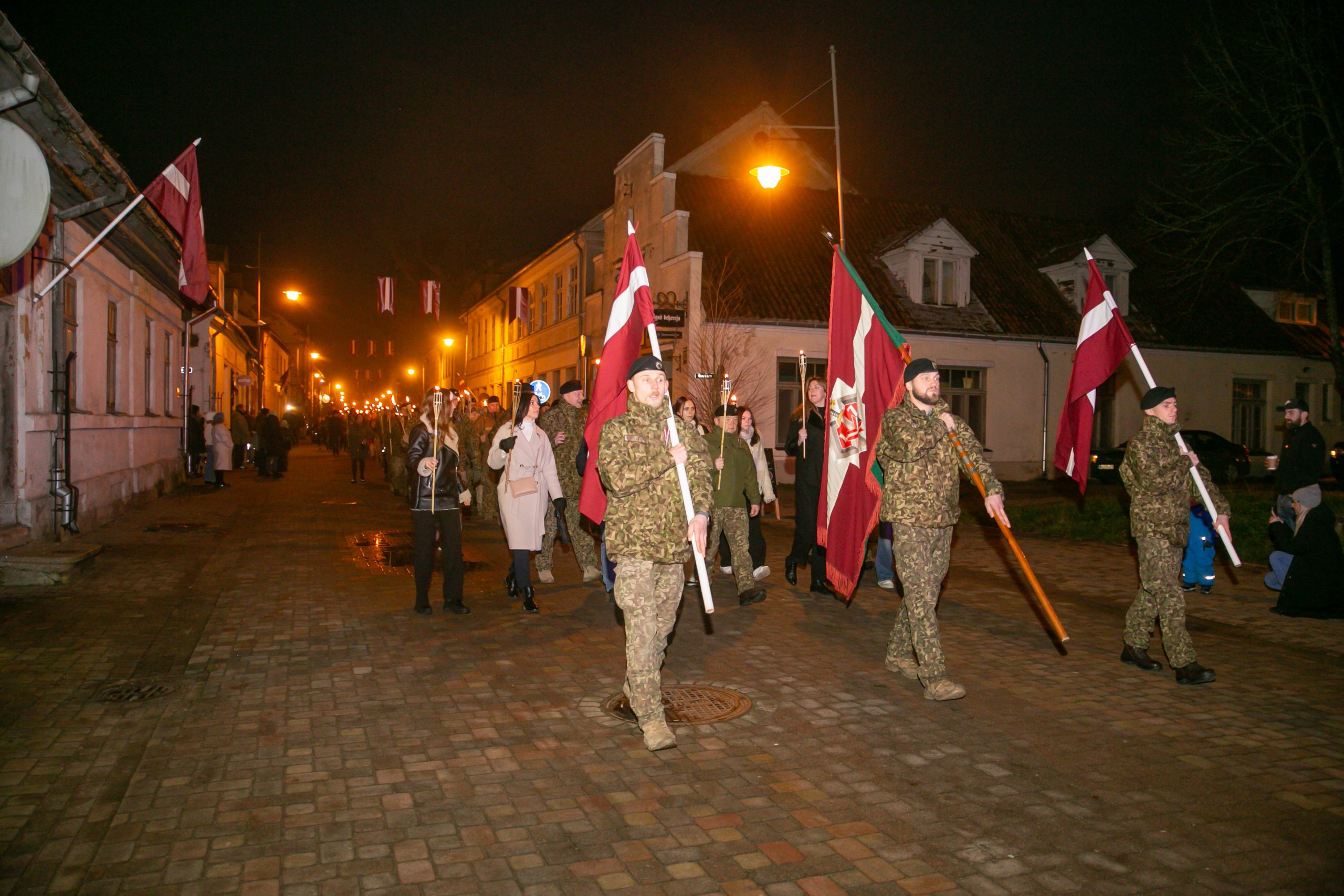 Pilsētas laukumā pulcējās iedzīvotāji, lai dotos lāpu gājienā. Tas virzījās cauri Liepājas ielai līdz Pilsētas dārzam, kur notika Lāčplēša dienas koncerts muzikālās apvienības “Ance Jankovska un co” vadībā.
