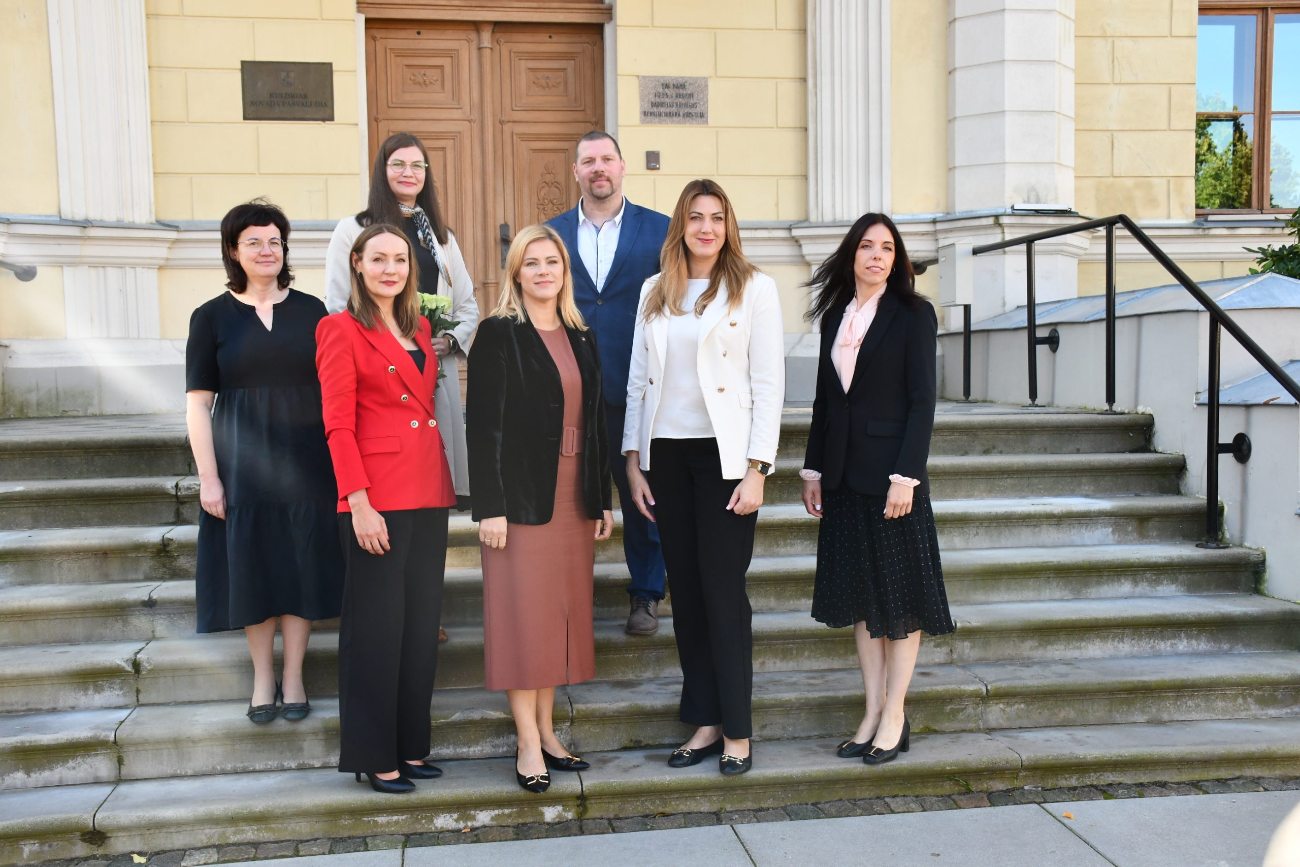 Kuldīgā Ministru prezidenti sagaidīja novada domes priekšsēdētāja Inese Astaševska, vietnieks Artis Roberts, izpilddirektore Ilze Dambīte- Damberga, izpilddirektores vietniece Agnese Buka, kā arī Kuldīgas novada būvvaldes vadītāja Jana Jākobsone un Kuldīgas attīstības aģentūras vadītāja Dace Šēle. Domes vadība iepazīstināja ar Kuldīgas novada attīstības plāniem, uzņēmējdarbības vidi un pašvaldības darbu kultūrvēsturiskā mantojuma aizsardzībā. Pārrunāti jautājumi, kas saistīti ar Kuldīgas vecpilsētas iekļaušanu UNESCO Pasaules mantojuma sarakstā.