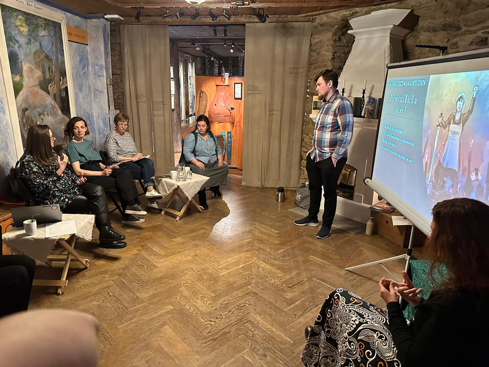 Projekts “Storytelling – a key to inclusive society” norisināsies līdz 2024. gada beigām un tā ietvaros ieplānotas vairākas mācīšanās vizītes, semināri, publiski pasākumi Zviedrijā un Latvijā. Projekta ietvaros 2023. gada augustā notika Stāstniecības vasaras skola, divu dienu pasākumā pulcējot vairāk kā 40 dalībnieku – kultūras iestāžu un pagastu kultūras darbiniekus no Kuldīgas novada un citus interesentus.